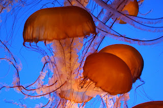 After visiting the Grands, we stopped in Monterey Bay, CA on our way to San Francisco. We were there for parts of two days; not nearly enough time to enjoy it all. Monterey Bay was beautiful; though chilly when one is expecting the 107 degree weather of central California. It was 62 degrees when we arrived at noon and swiftly dropped to a sunny 57. Regardless, it was certainly a very lovely town right on the water. We dropped our stuff at the hotel and headed towards the Aquarium on Cannery Row.